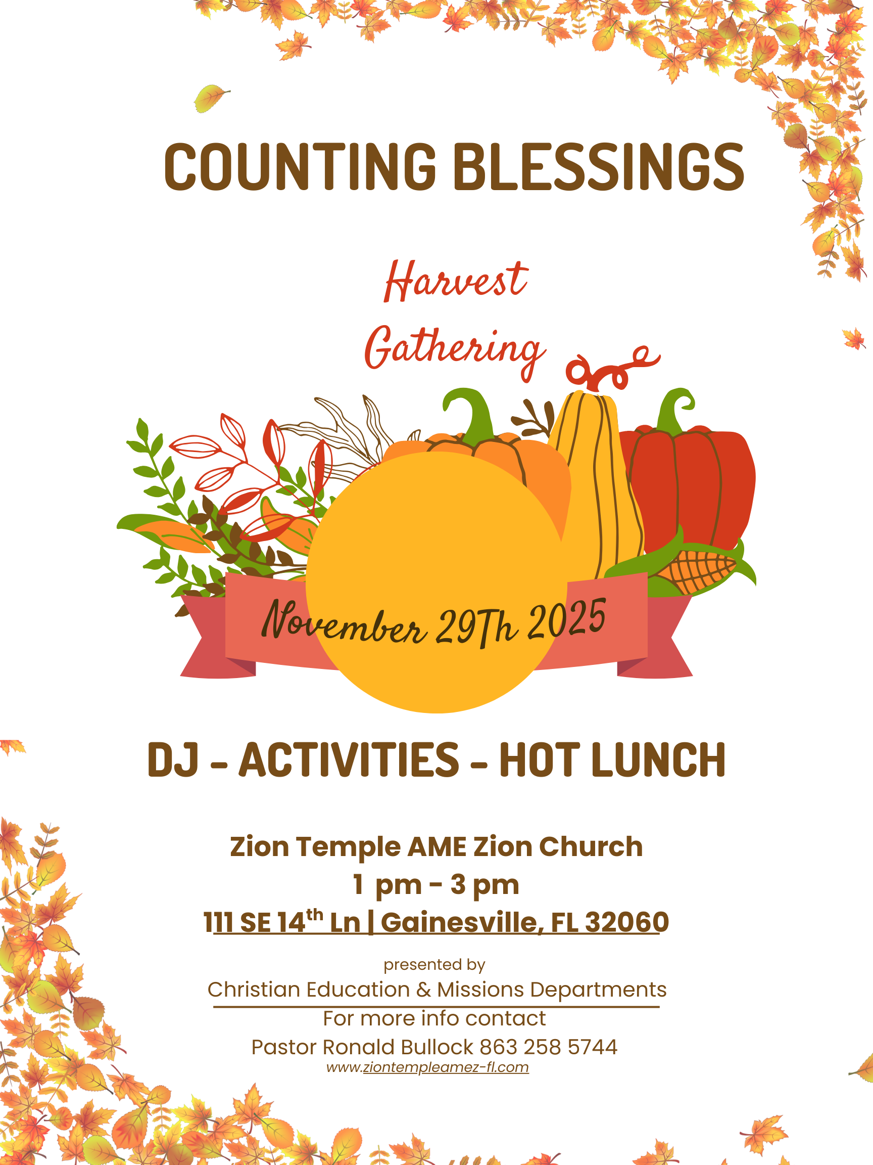 Join us for engaging worship, fellowship, and community outreach. Let's journey together in faith and love at Zion Temple AME Zion Church - Gainesville.